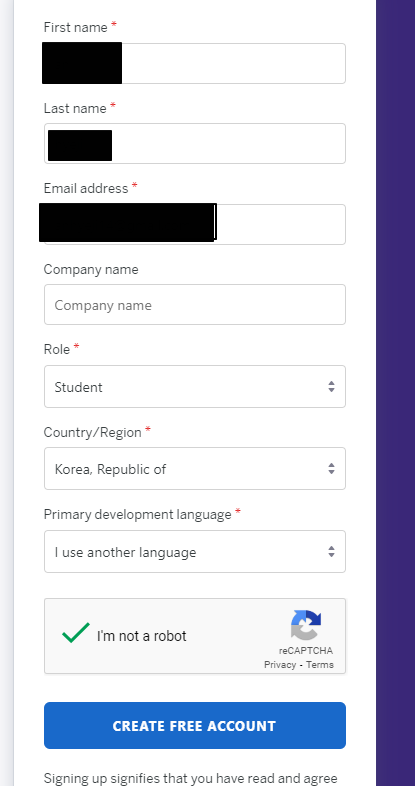 1.가입 (필수항목기입, korea,republick, i use another language선택)