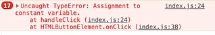 외부 변수를 let 대신 const로 변경하였을때 에러가 뜬다. (Assignment to constant...)