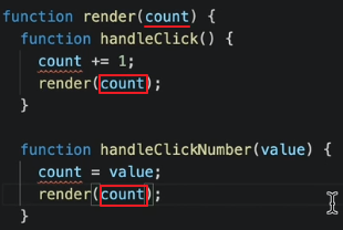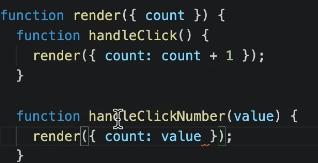 // ... let count = 0; function handleClick() { count = count + 1; render(); } // ...