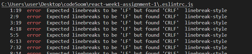 기존 프로젝트가 줄바꿈을 LF로 처리하고 있었다.
