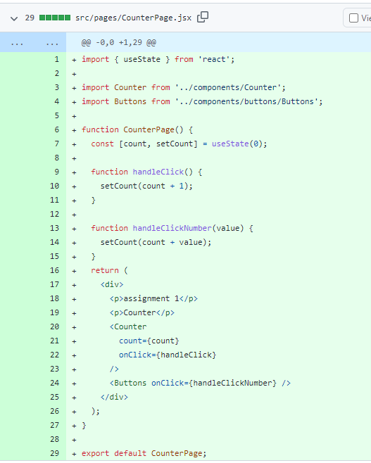 간단한 카운터앱을 만들어 주세요! 단 이번 과제에서는 각 컴포넌트 마다 각 파일로 분리해주세요. 즉 하나의 파일에는 하나의 컴포넌트만 있어야 합니다.