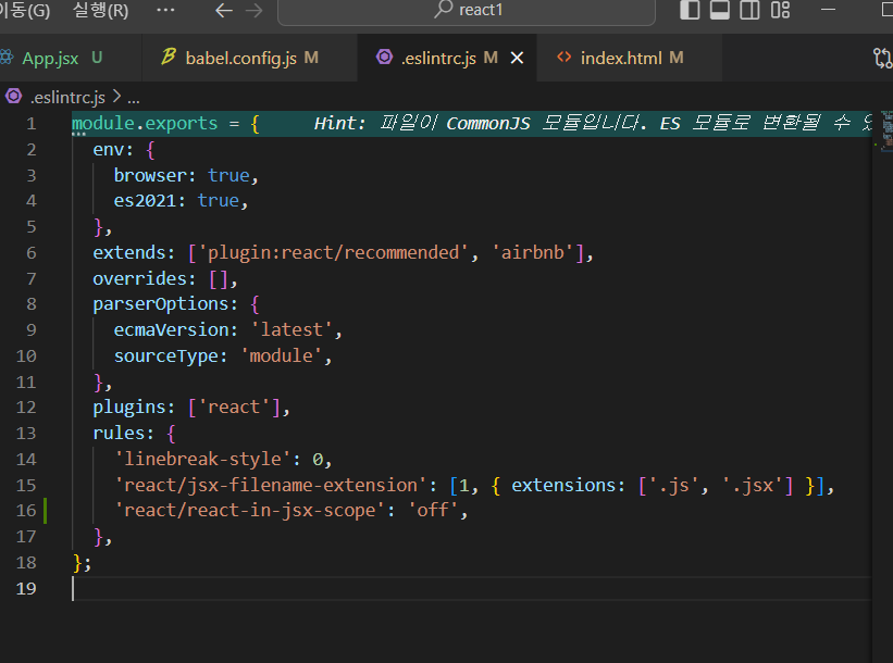 해결: .eslintrc.js 파일에서 rules:{} 안에 아래 코드 추가하자 eslint 오류 해결