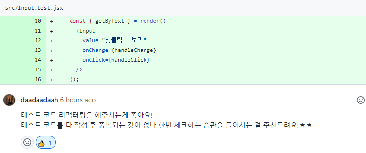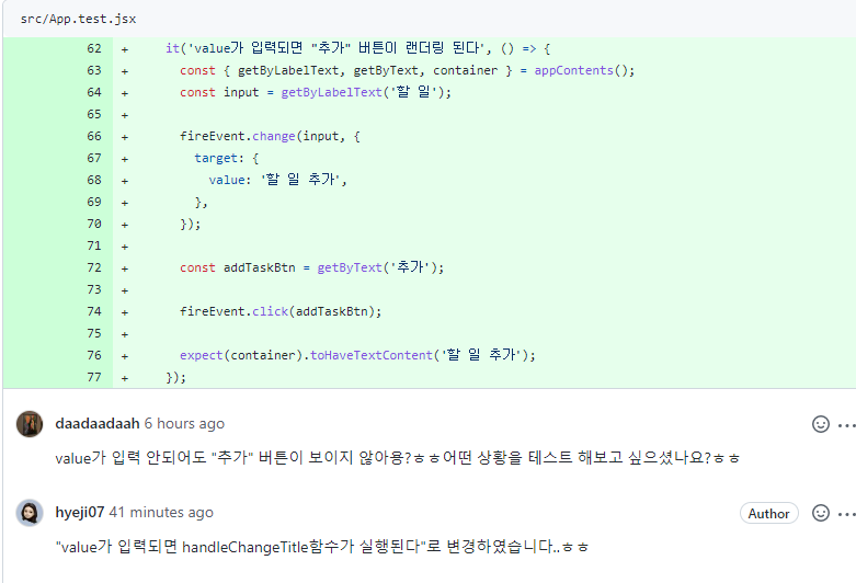 it('value가 입력되면 "추가" 버튼이 랜더링 된다', () => {