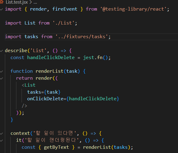 expect(getByText('할 일이 없어요!')).not.toBeNull();