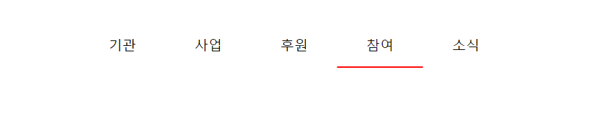 ul>li>a::after{content:''; display: block;width: 0px; height: 2px;background:red;position: absolute;left:50%; top:45px; transform:translateX(-50%);}/*밑줄만들기*/
