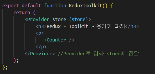 <Provider store={store}></Provider>로 감싸서 store에 전달