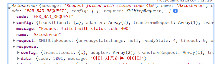 만약 console.log(err) 를 해본다면 다음과 같이 내용을 확인할 수 있다.