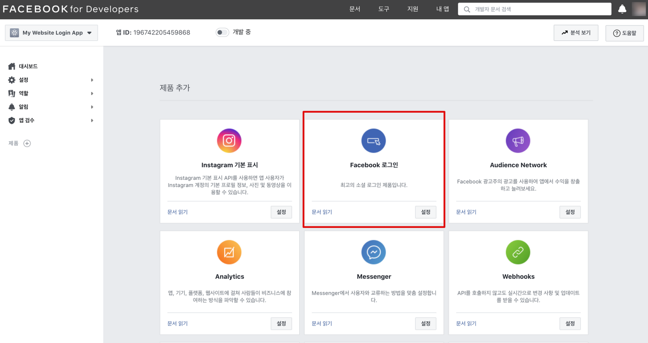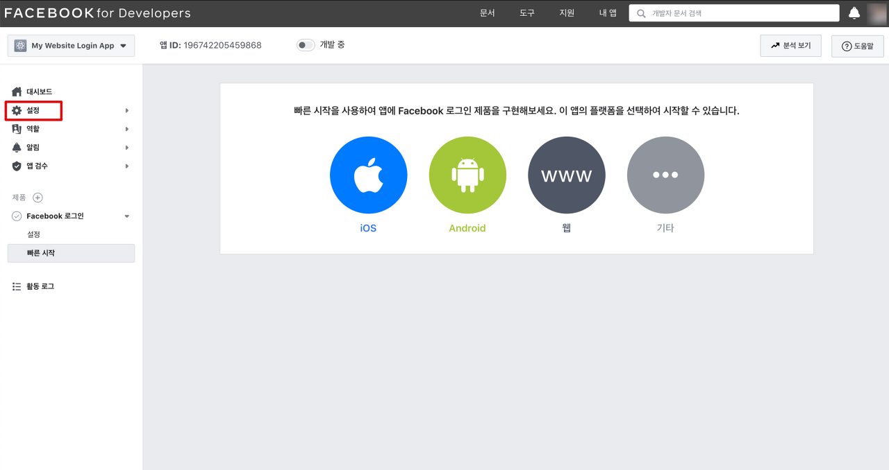 페이스북 소셜 로그인 AppID와 Secret Key 설정 방법