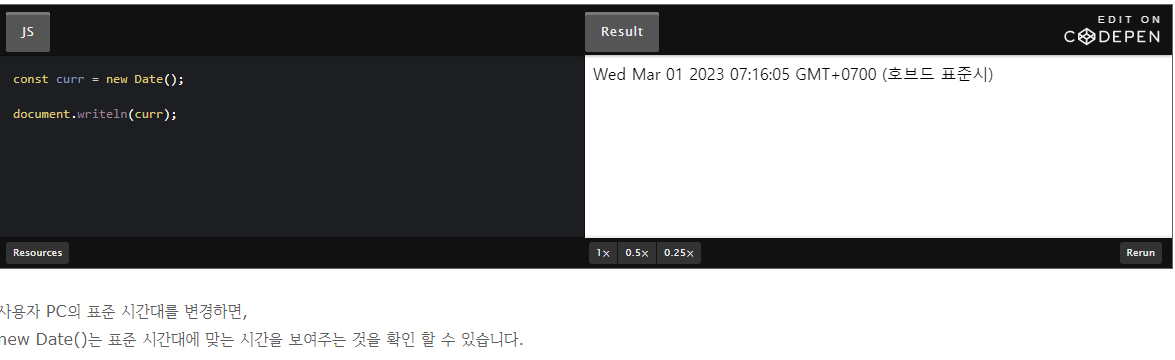 이렇게 시간을 가져오면 사용자 PC에 설정된 시간대 기준으로 시간을 표시해 줍니다.