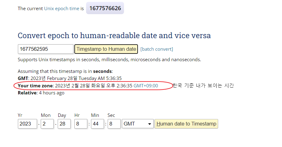 아래 사이트에서는 유닉스타임을 변환한 시간을 확인할 수 있다.