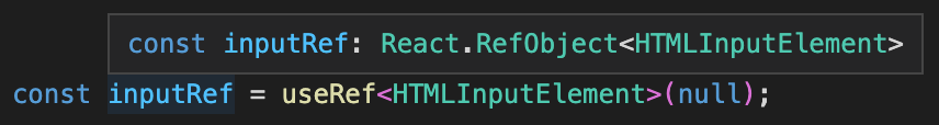 * ref객체는 MutableRefObject<HTMLInputElement | null> 타입으로 정의된다.