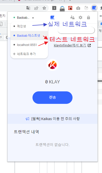 사용자가 Kaikas 로그인을 할 때, 네트워크가 어딘지 파악하여 만약 테스트넷일 경우는 alert창으로 경고를, 메인넷(실제이용네트워크)일 경우는 이용할 수 있도록 설정하기 위함