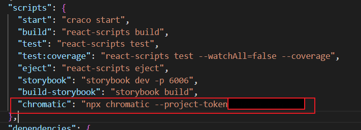 아래와 같이 package.json에 추가된다. (가려져있는 것은 project-token)