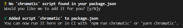 chromatic install은 아까 위에서 진행하였고, 밑에 코드를 진행 (검은박스는 내 token값이 나옴)