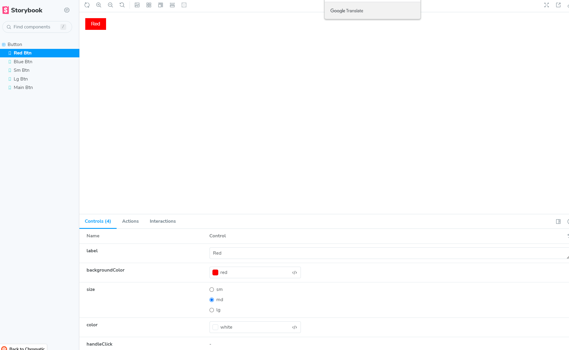 더 자세히 보고싶으면 view storybook 누르면 링크가 이동된다. chromatic에서 자동으로 스토리북형식으로 배포해준것으로 이 링크를 팀원들에게 공유해도 된다.
