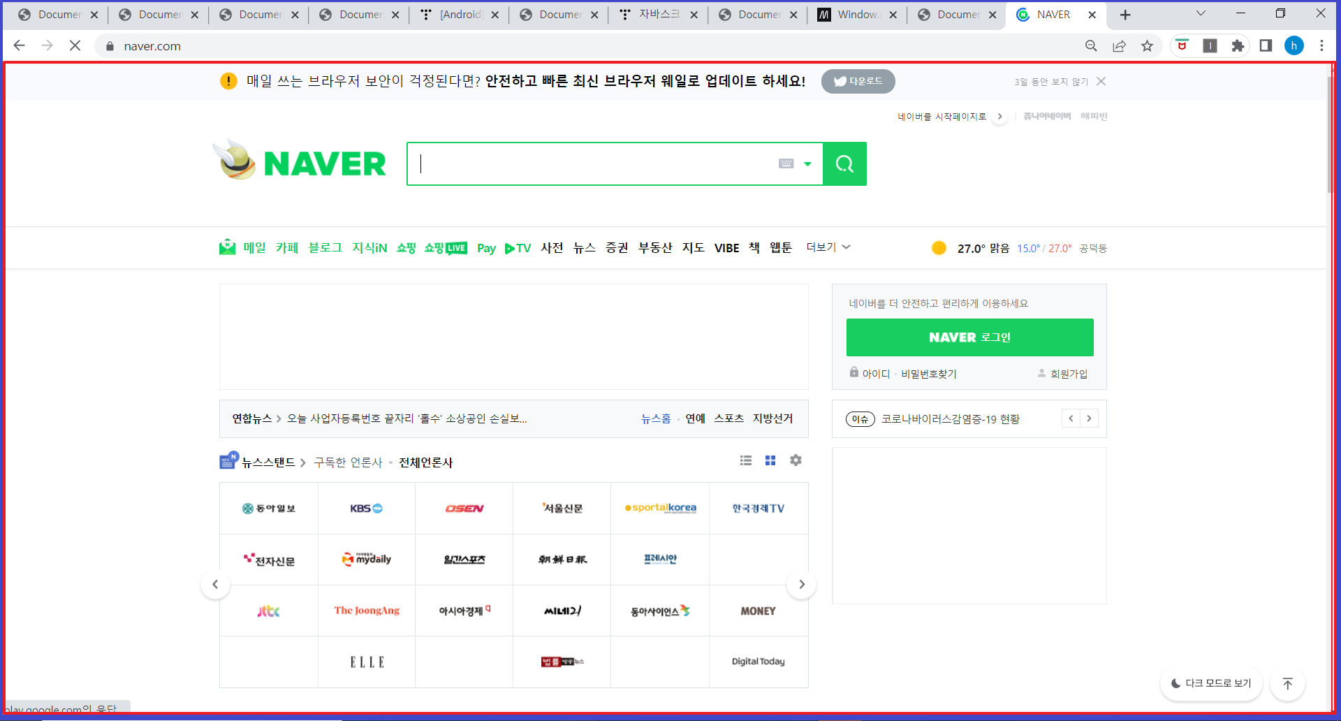 브라우저의 URL과 Tab을 포함한 전체적인 브라우저의 사이즈