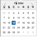 *달력:현재 보여지는 월말고 다른 월은 회색글자로 처리
