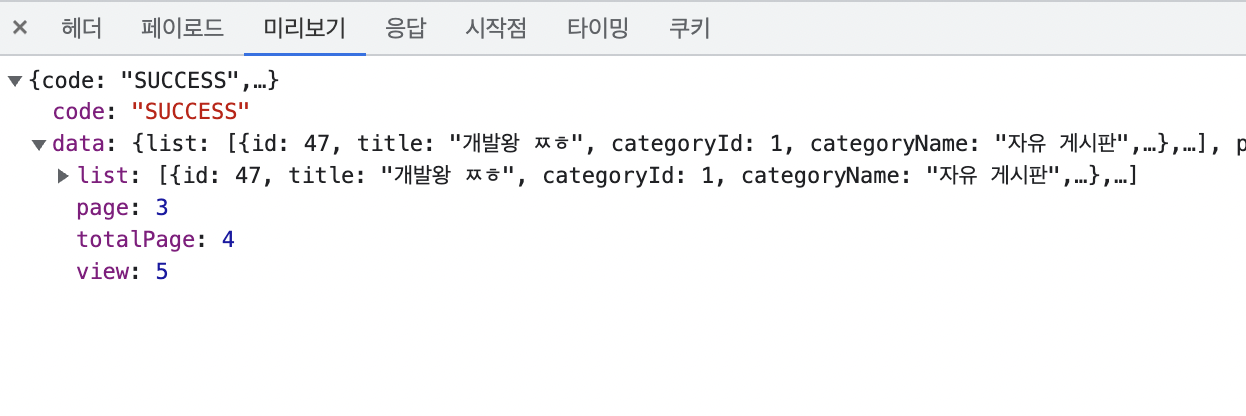 ex) 피드 게시물 api 데이터(파라미터 값에 page랑 totalPage와 view가 있다.)