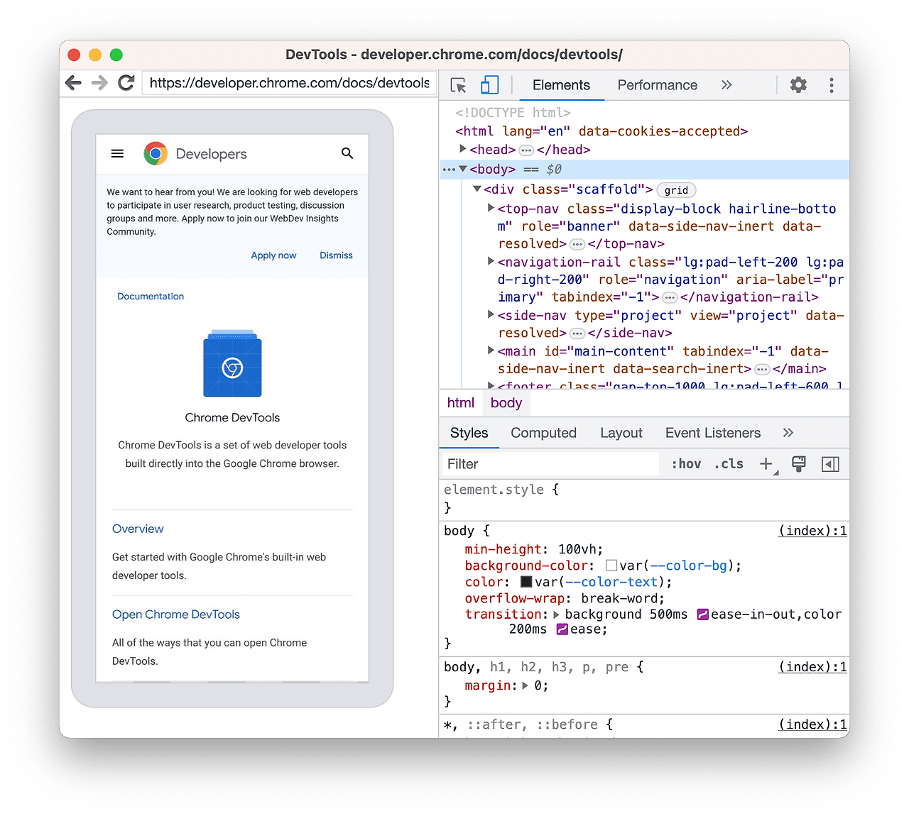 Android 기기의 모델 이름이 표시되면 DevTools에서 성공적으로 기기와의 연결을 설정한 것입니다.