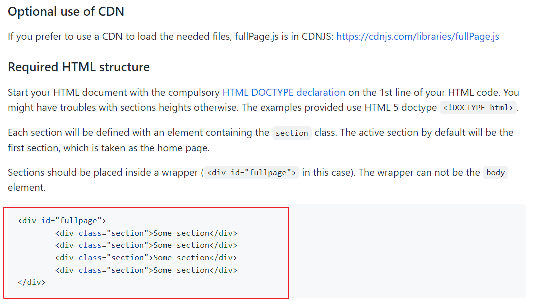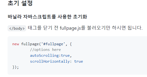 <!-- CDN (fullpage.min.js,easings.min.js,fullpage.min.css) ->copy script,link tag(가운데 아이콘 눌러서 복붙)/integrity,crossorigin, referrerpolicy부분은 없어도 작동되긴 함(보안부분때문에 작성하는거라)-->