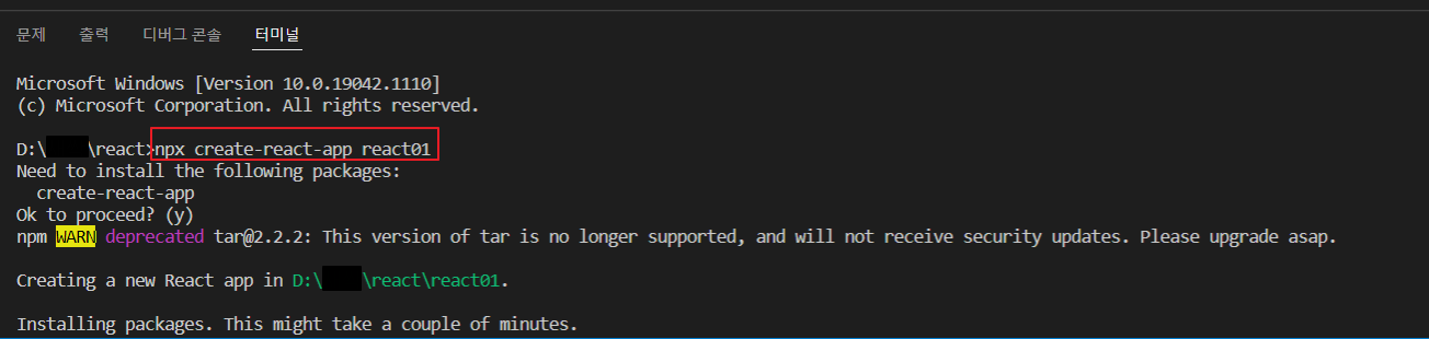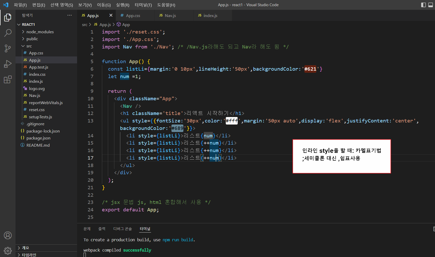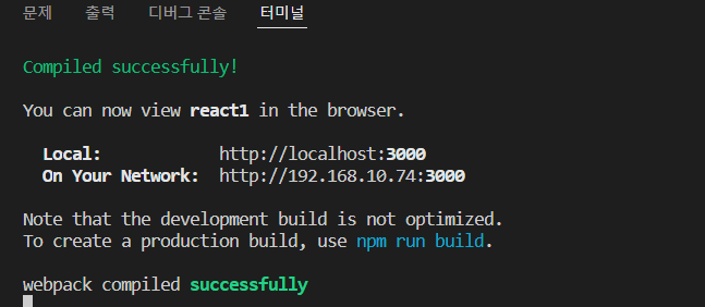아래 터미널에 D:\새싹\react\react01>npm start 치기