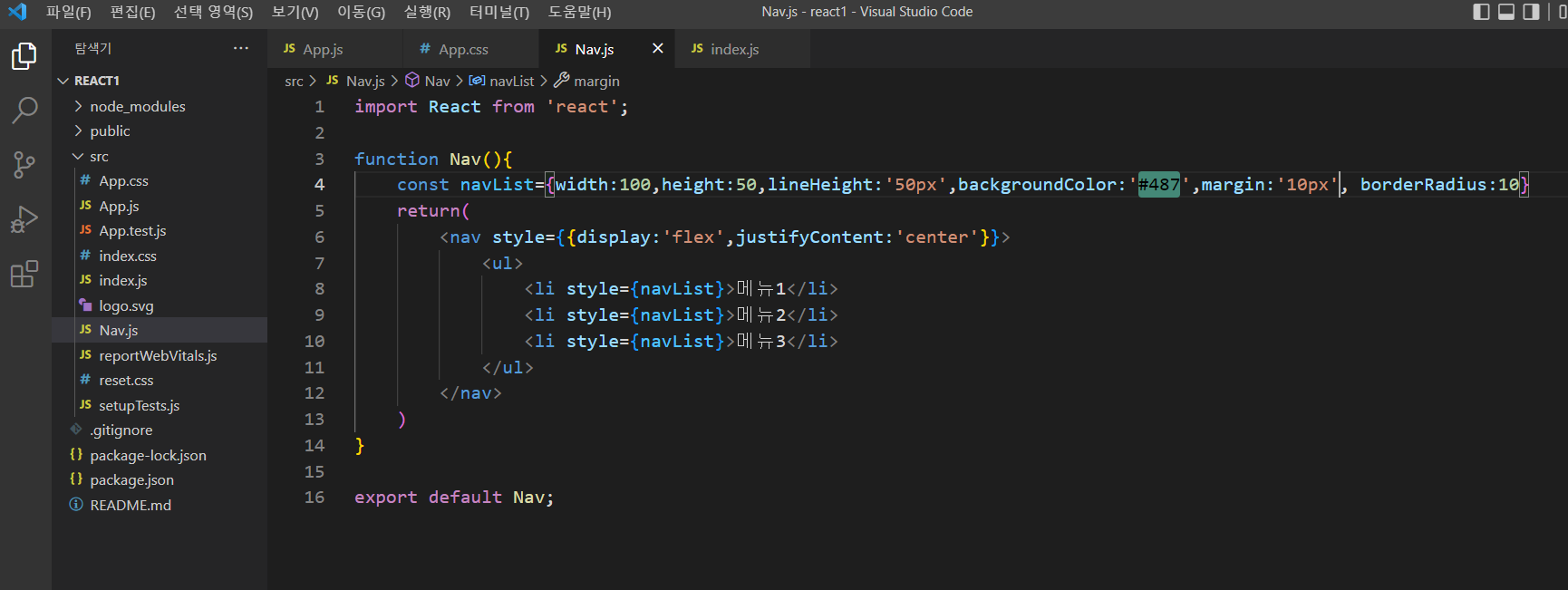 5. Nav.js (새로운 파일 생성 후 style 적용-앞에 대문자로 시작)
