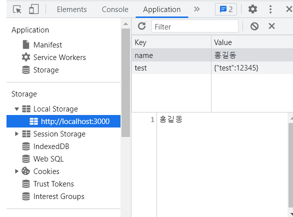 ▼ 다음과 같이 확인시 스토리지에 값이 저장된 것을 알 수 있다.