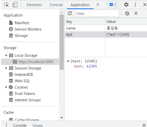 -크롬 콘솔에 위에 코드 치고 application>storage>localstorage>해당호스트링크 보면